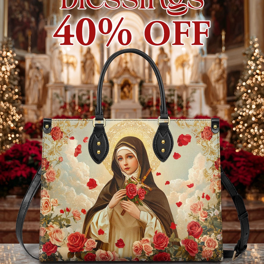 Follow the Little Way with Catholight’s St. Thérèse leather bags. Handcrafted designs featuring the 'Little Flower' and roses. Carry faith and humility.