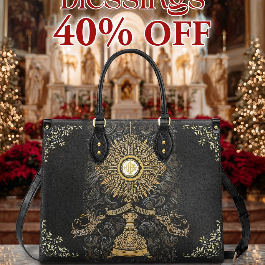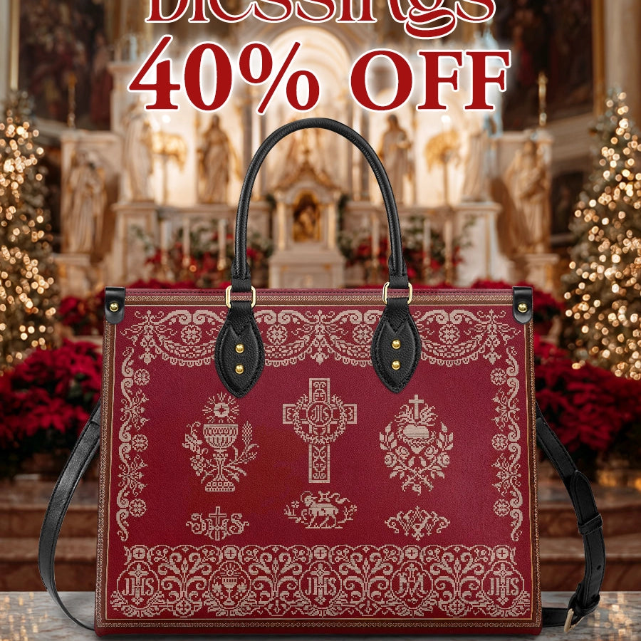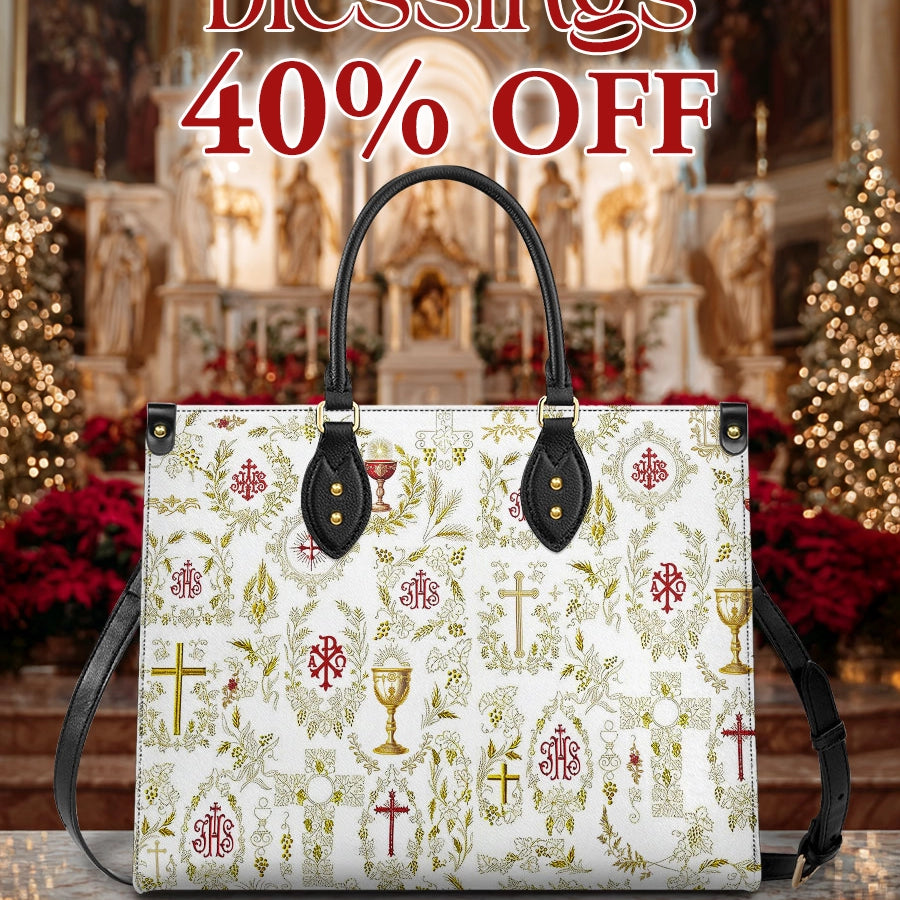Discover Catholight’s handcrafted leather tote bags. Spacious, premium designs featuring elegant embossed Catholic symbols. Carry your faith in style every day.