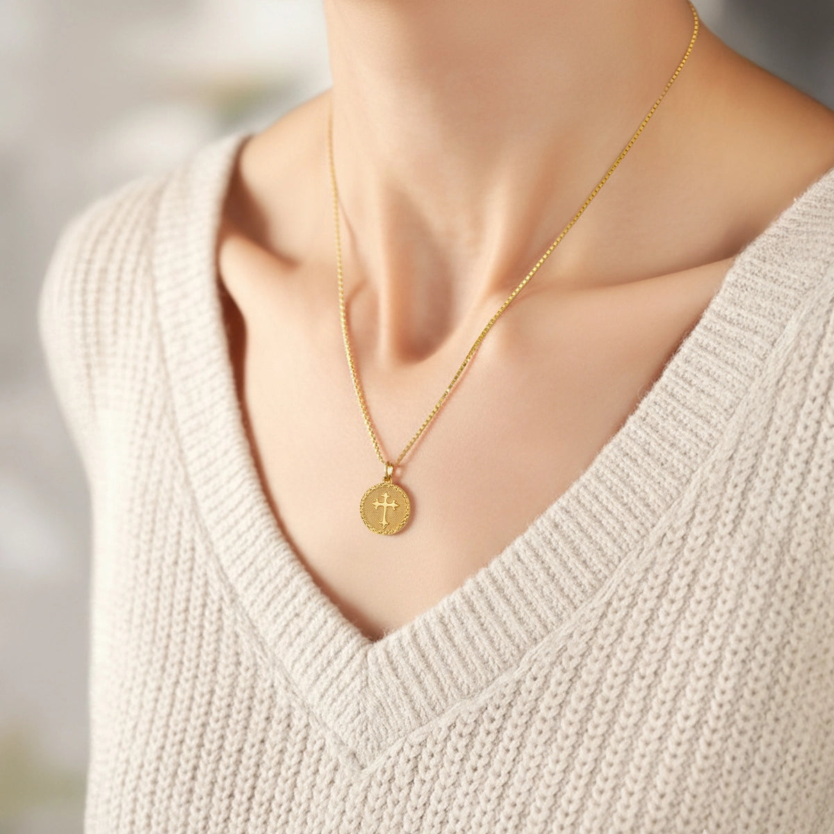 I bought this tiny cross necklace for my teenage daughter. She wears it every day — it’s delicate but strong.
