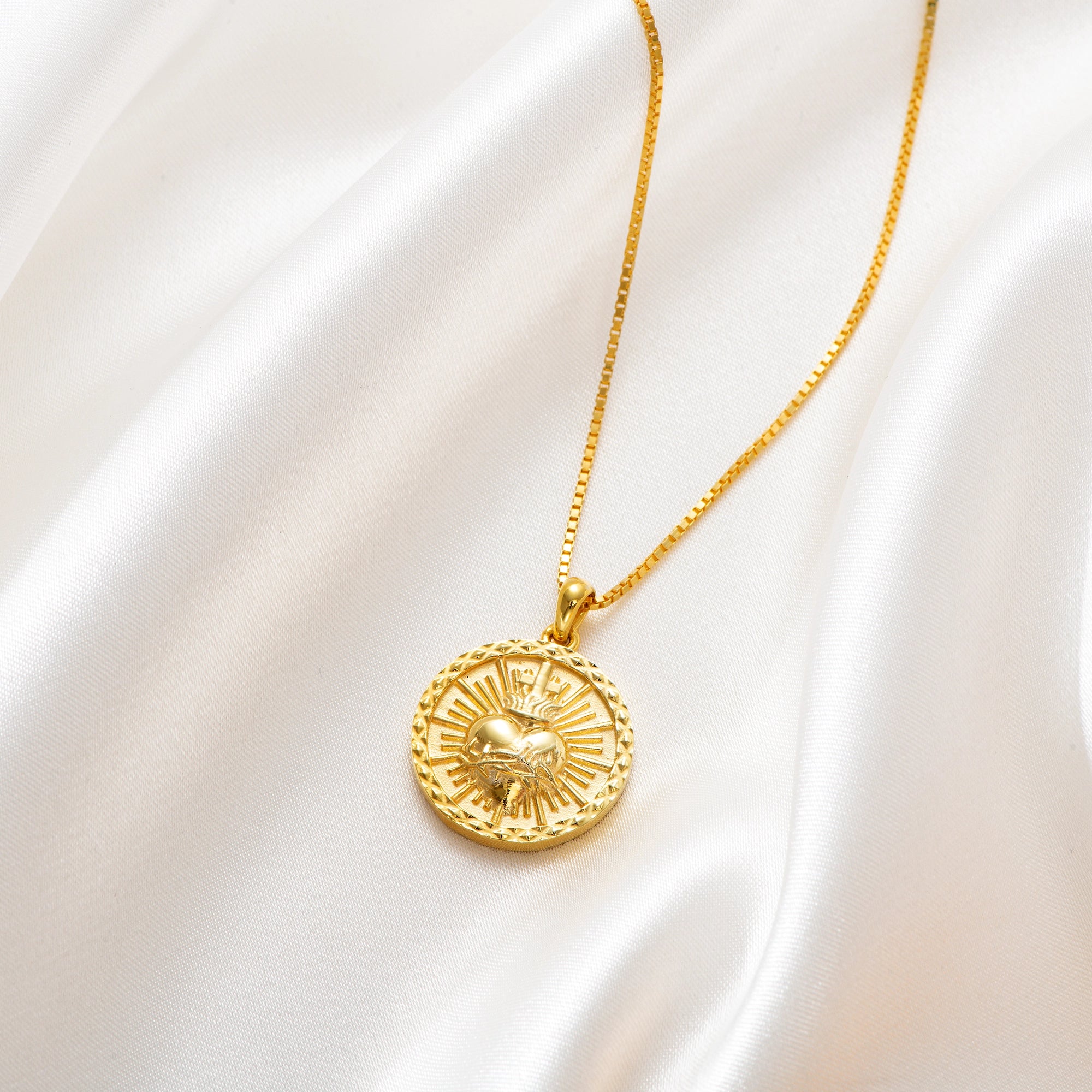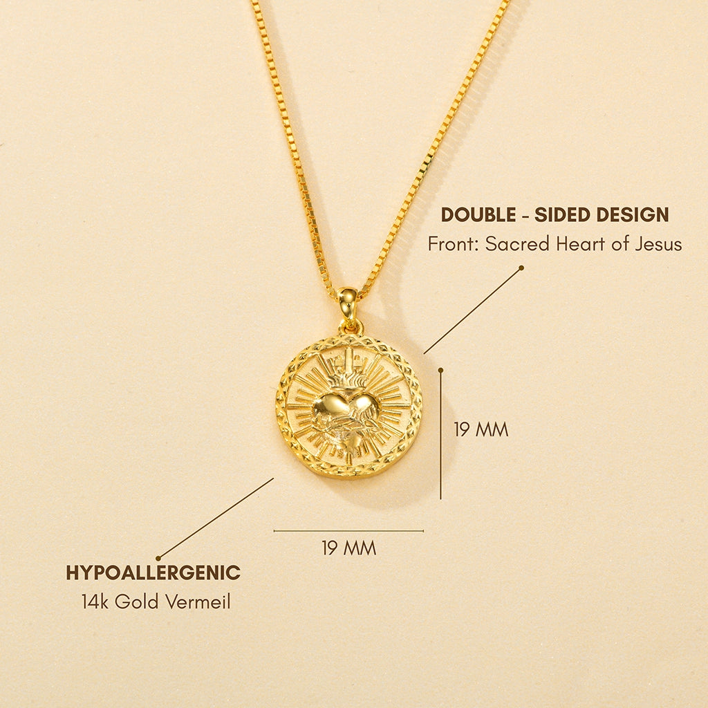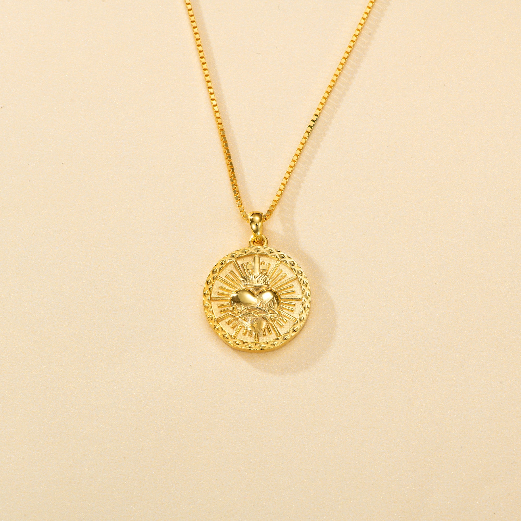 Katholische Herz- und Kreuzkette aus vergoldetem Sterlingsilber