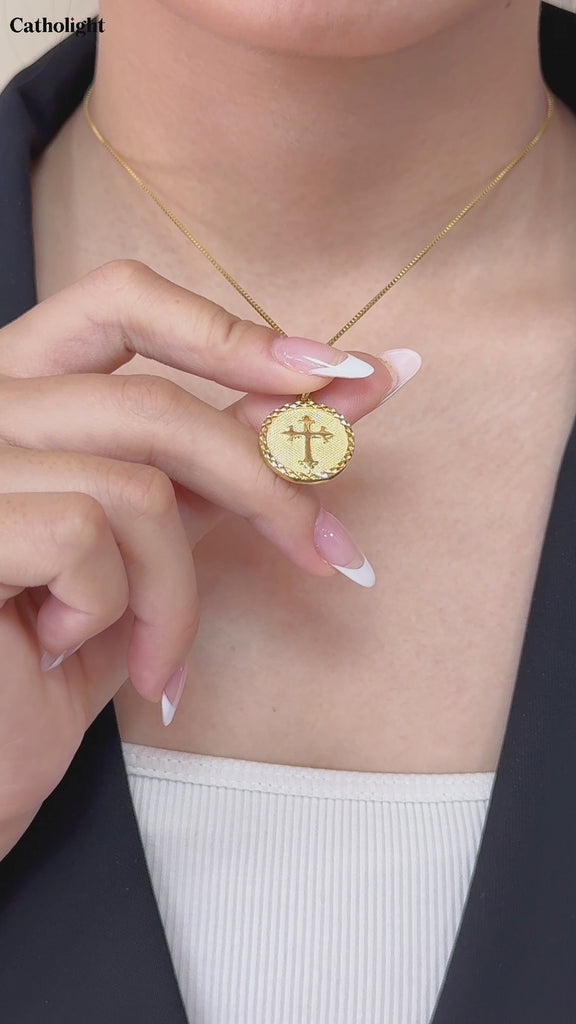 Catholight Dornenkronen-Kreuzkette aus 14-karätigem Gold-Vermeil/Sterlingsilber