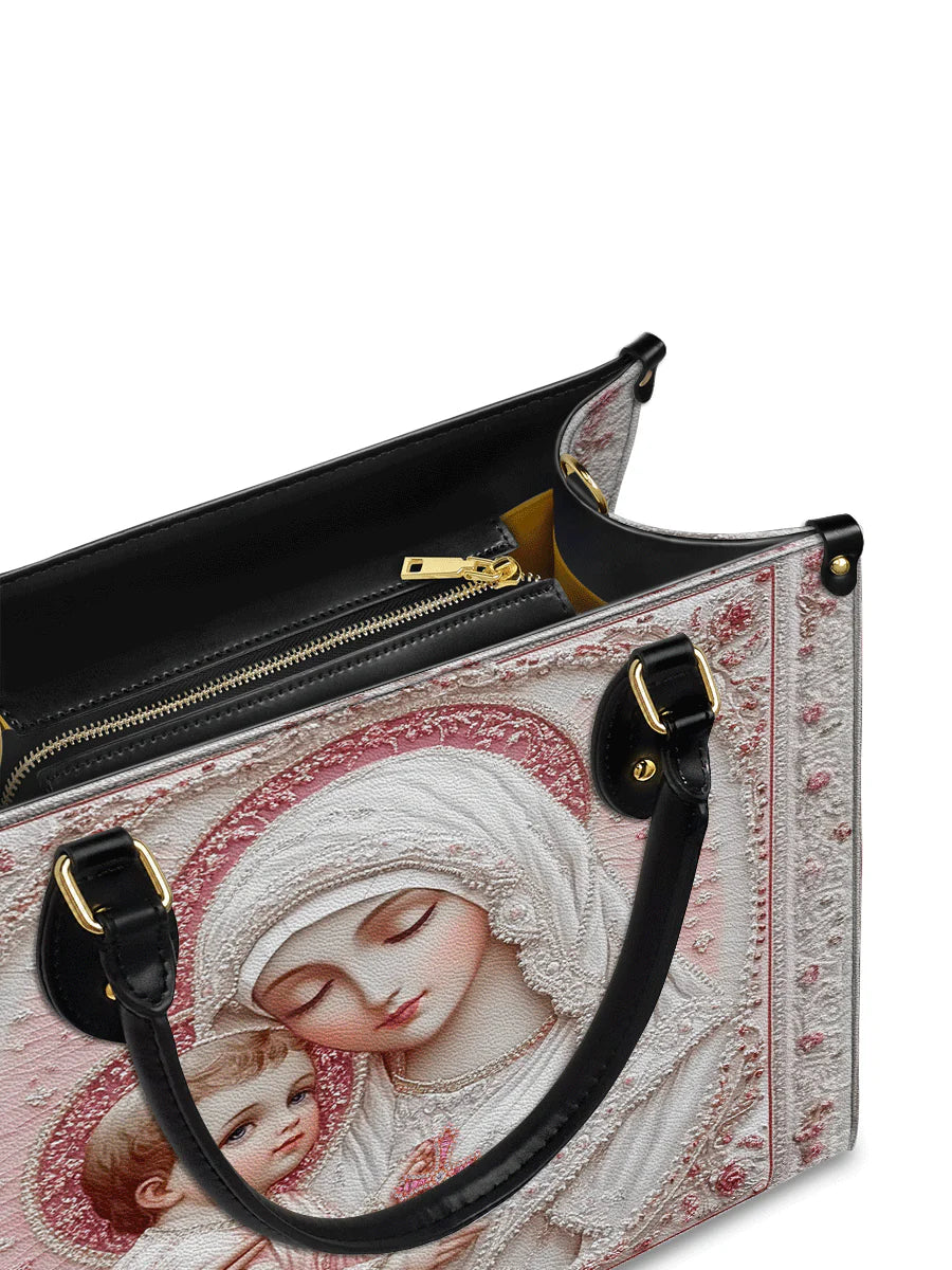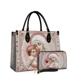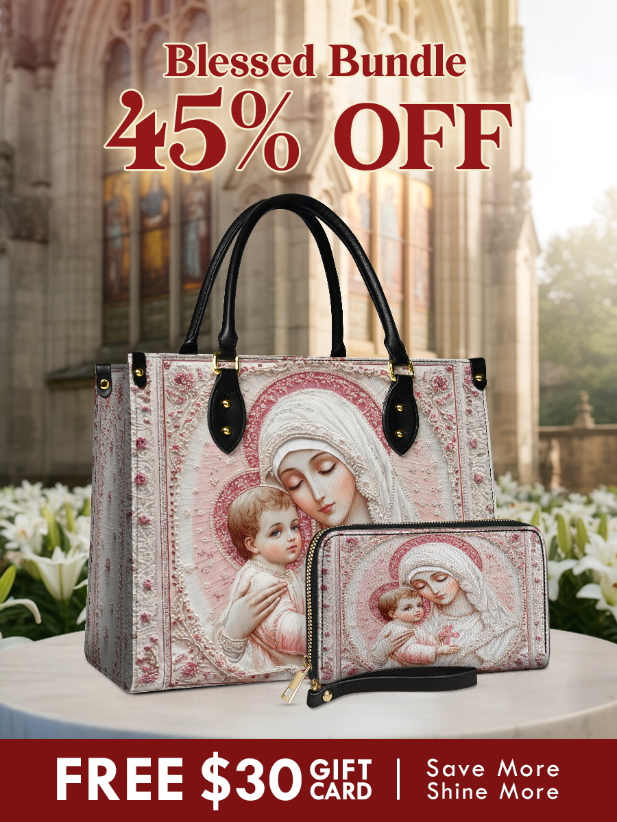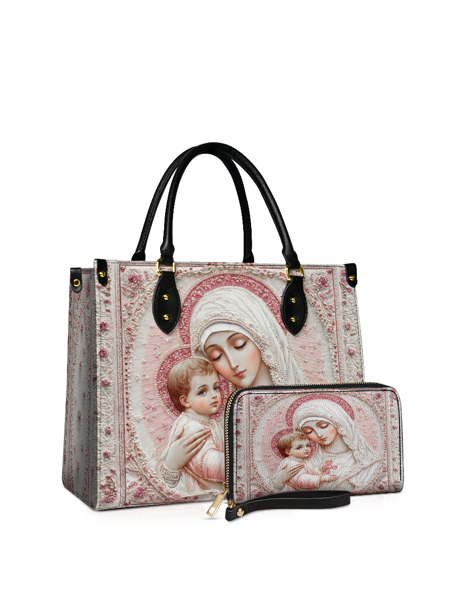 Die elegante Handtasche bietet viel Platz für den Alltag, während die passende Geldbörse Ordnung und Ästhetik vereint. Zusammen sind sie mehr als nur Accessoires – sie erinnern auf liebevolle Weise an mütterliche Liebe und die ewige Fürsorge Christi.
