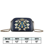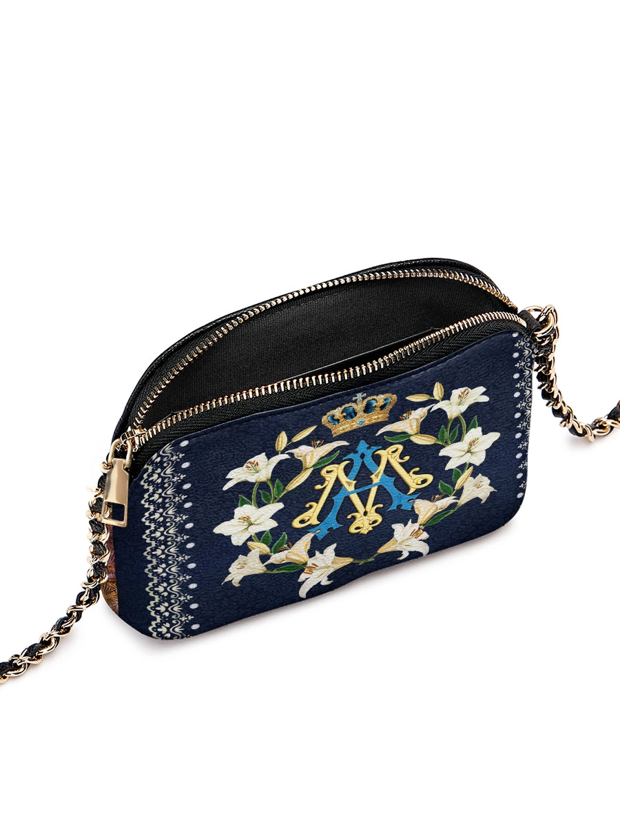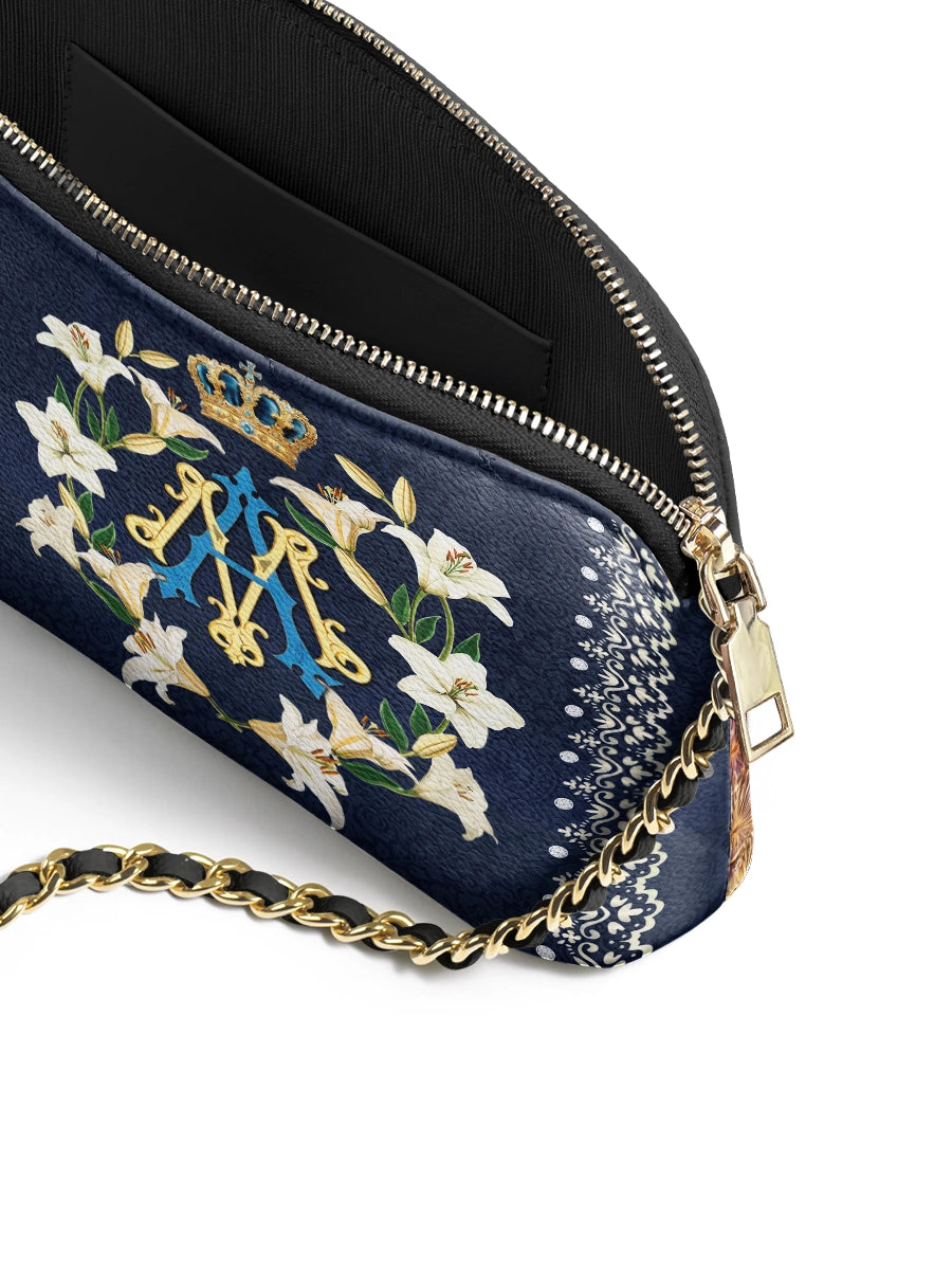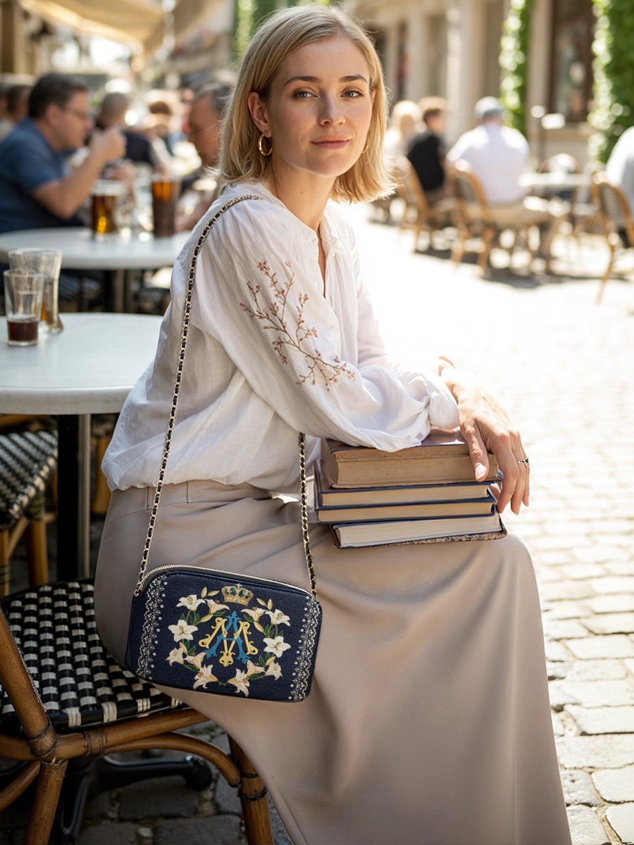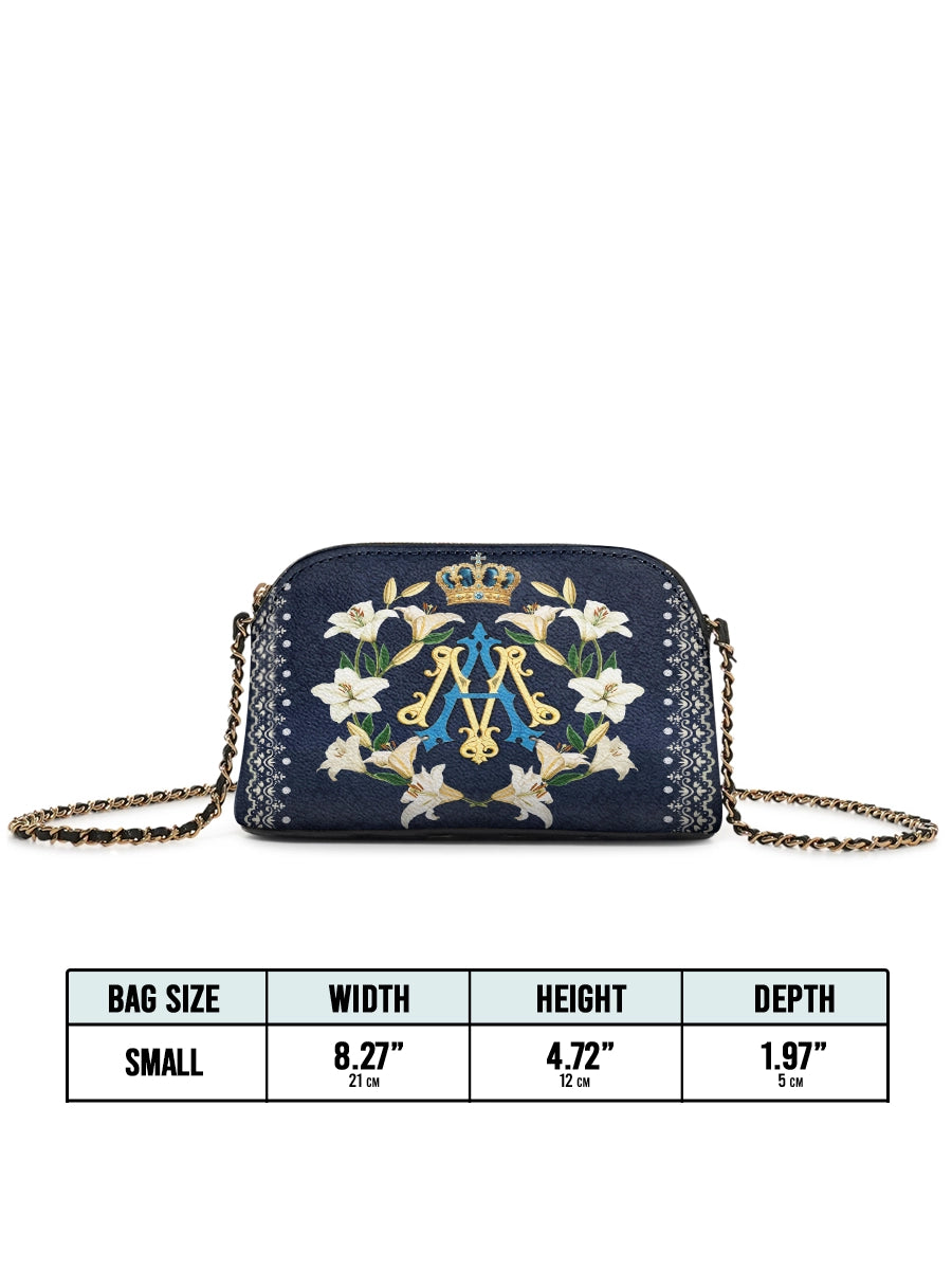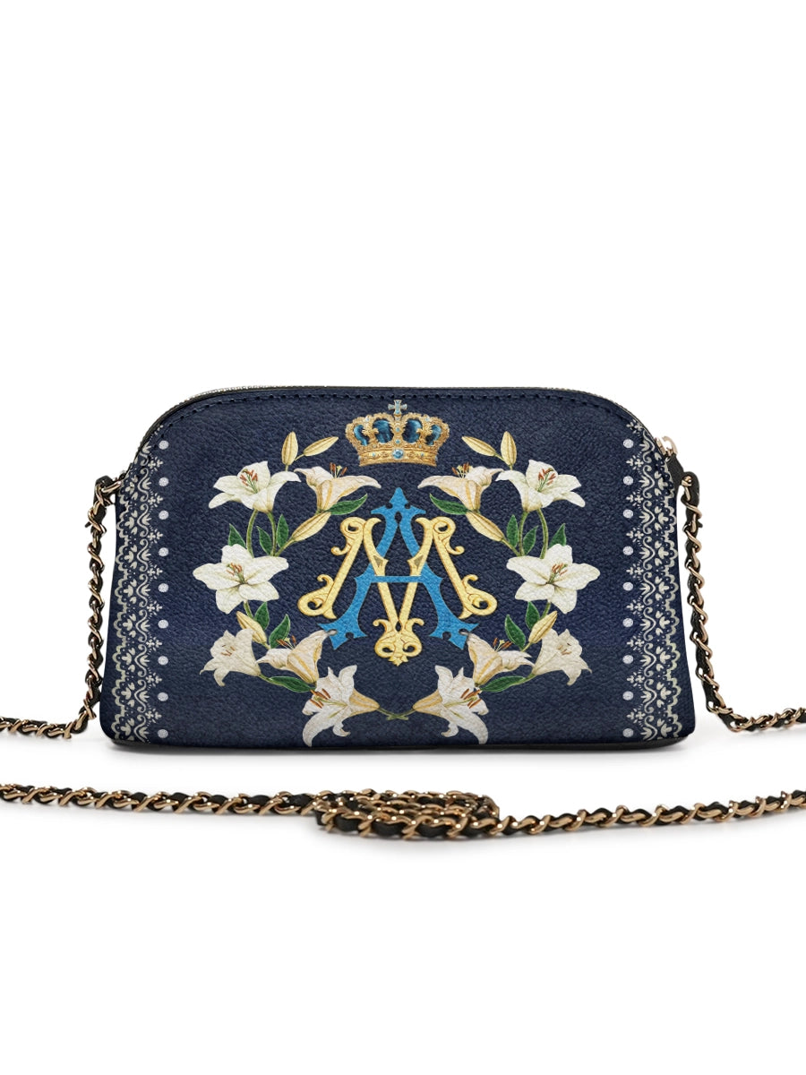 Die Catholight Crossbody Bag wurde mit Eleganz und Bedacht entworfen. Sie ist ein stiller Ausdruck von Glaube und Eleganz. Ihre kompakte Form, der goldverzierte Kettenriemen und die symbolische Gestaltung machen sie zu einem bedeutungsvollen Begleiter im Alltag und in besonderen Momenten.