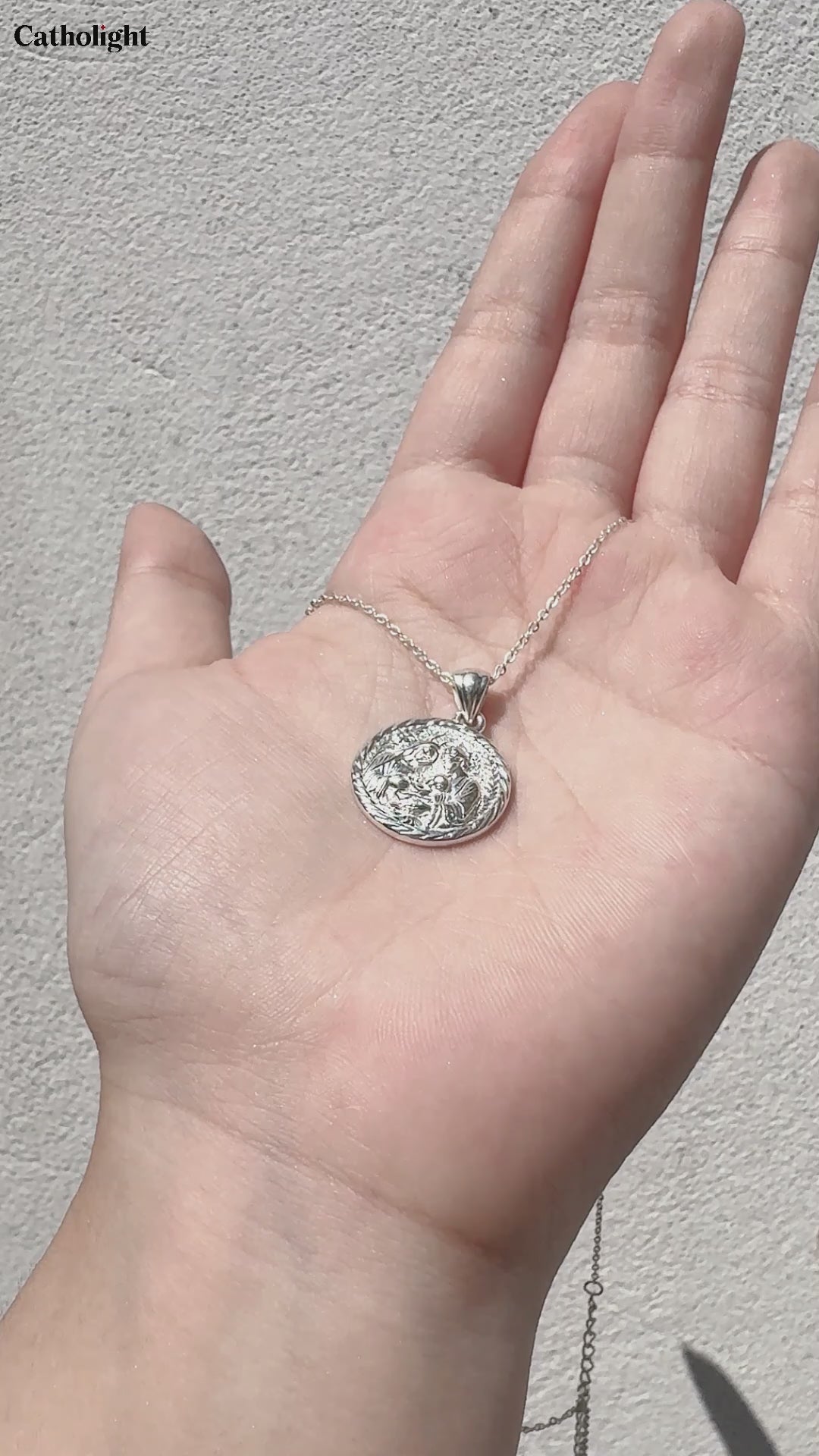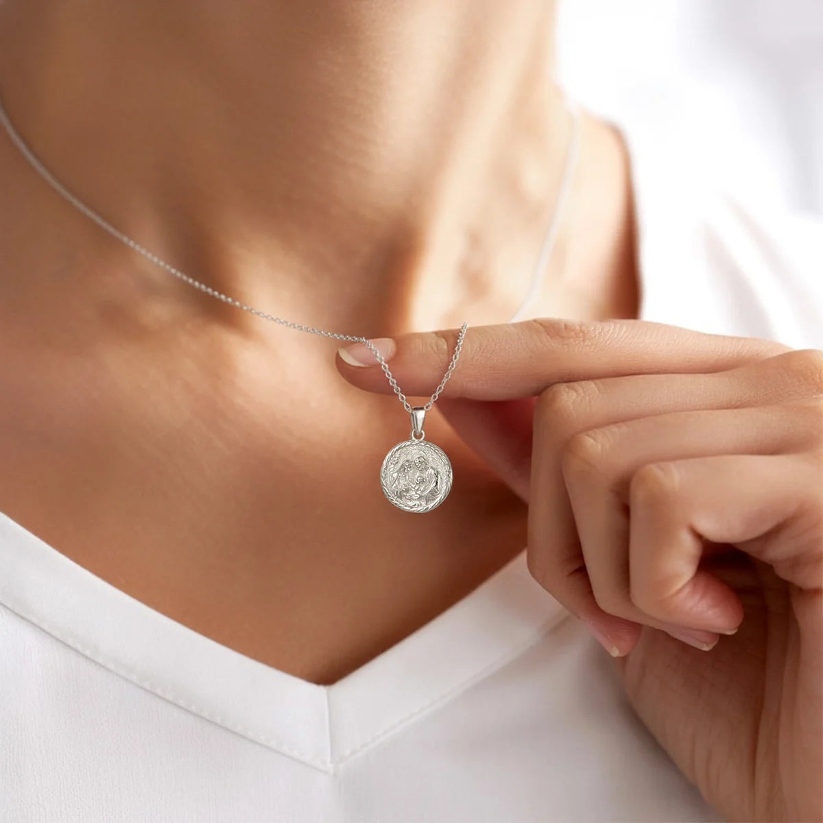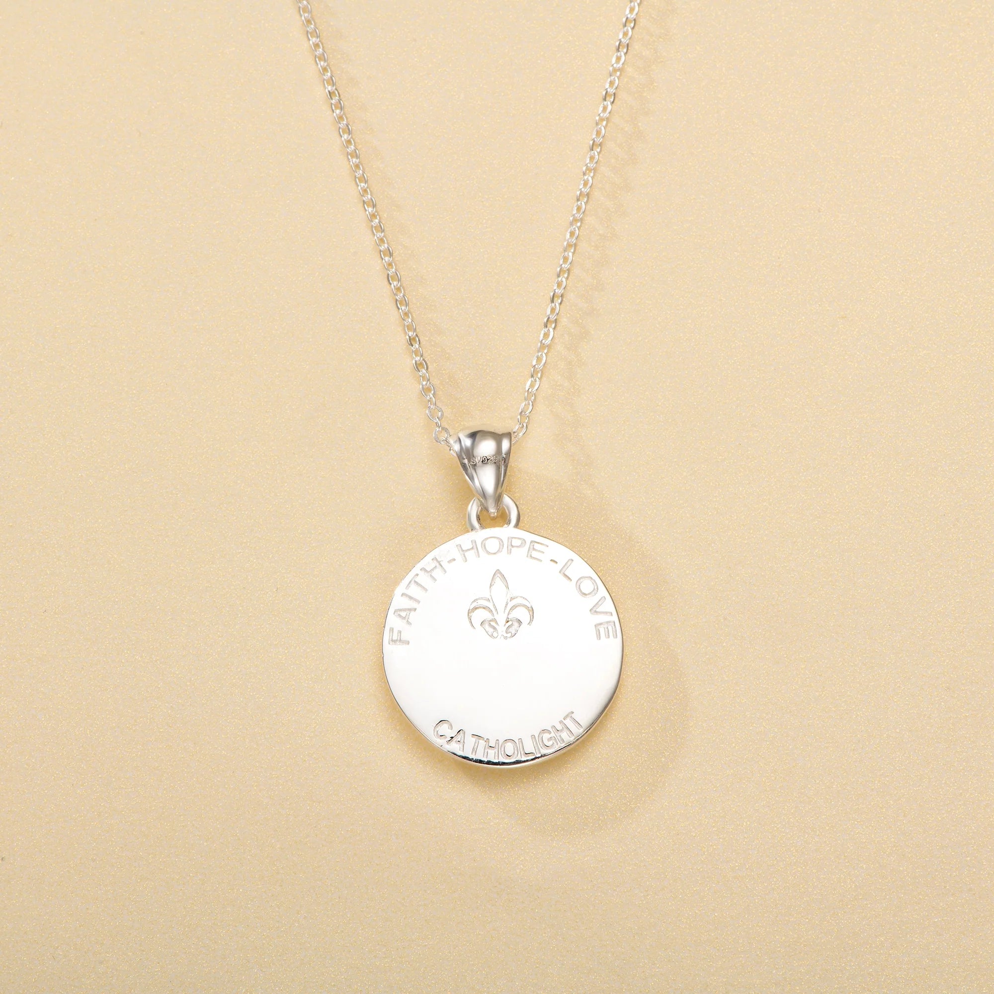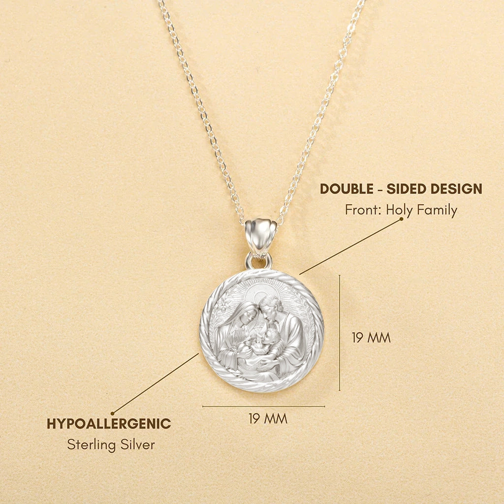 Katholische Halskette der Heiligen Familie aus Sterlingsilber