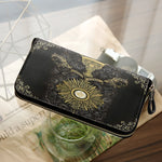 Das elegante Design verbindet tiefe spirituelle Symbolik mit zeitloser Eleganz und macht es zu einem perfekten Accessoire für diejenigen, die ihren Glauben schätzen. Mit seinen praktischen Fächern für Karten, Bargeld und Münzen verbindet diese Brieftasche nahtlos Funktionalität mit bedeutungsvoller Kunstfertigkeit.