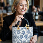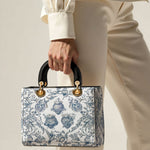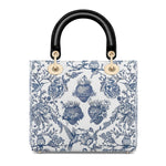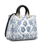 Catholight Sacred Elegance: Blaue und weiße Devotion-Damenledertasche