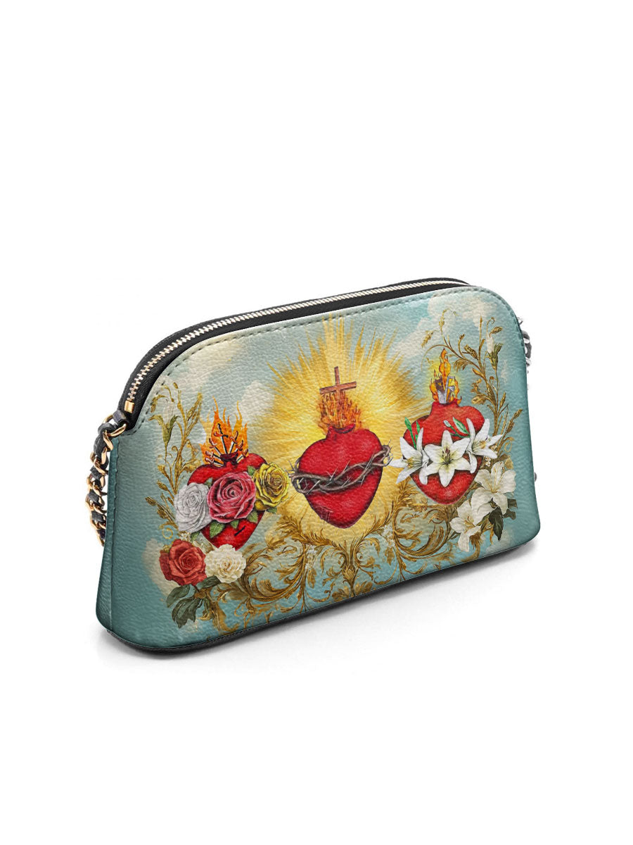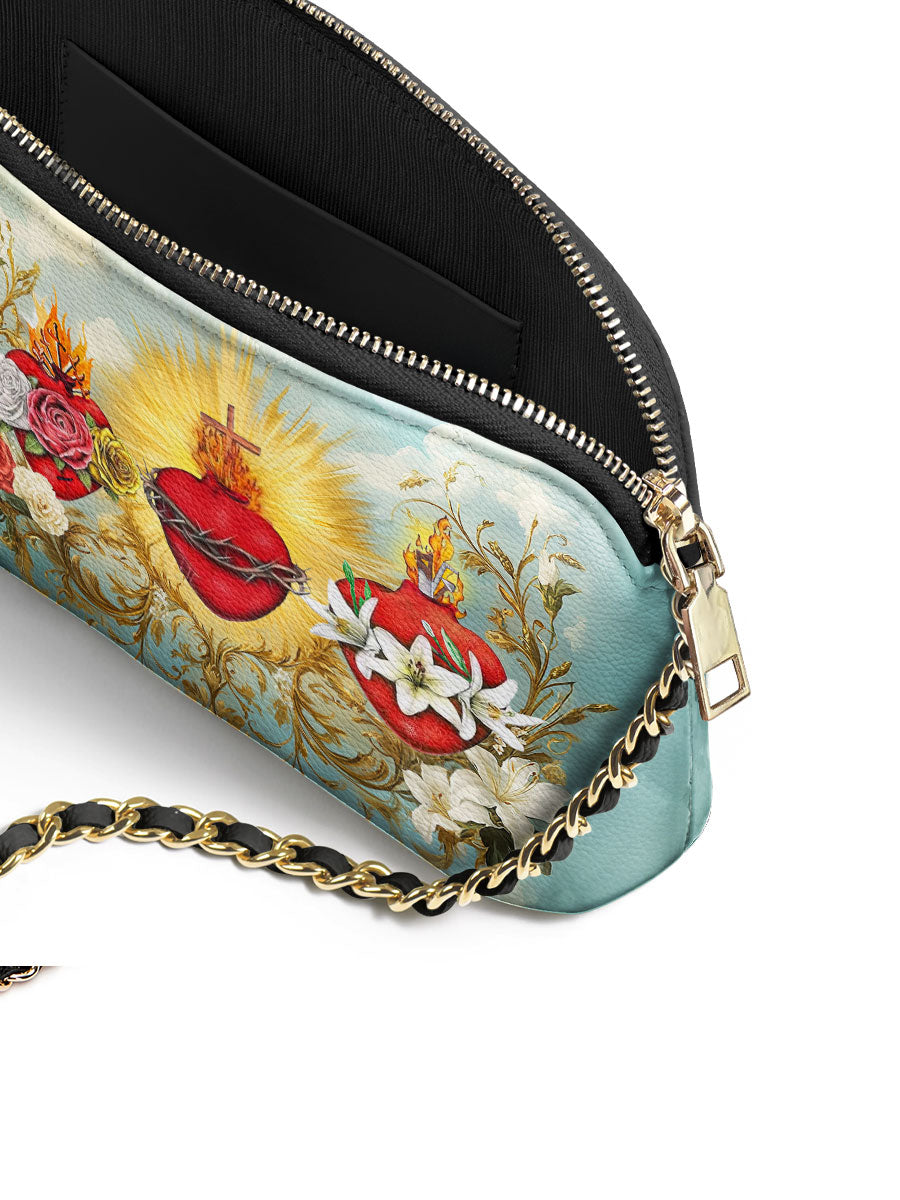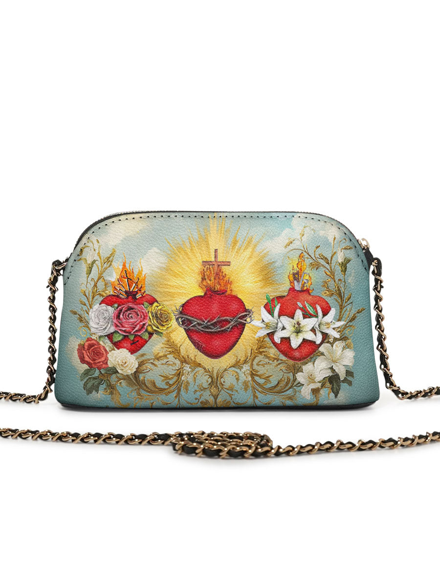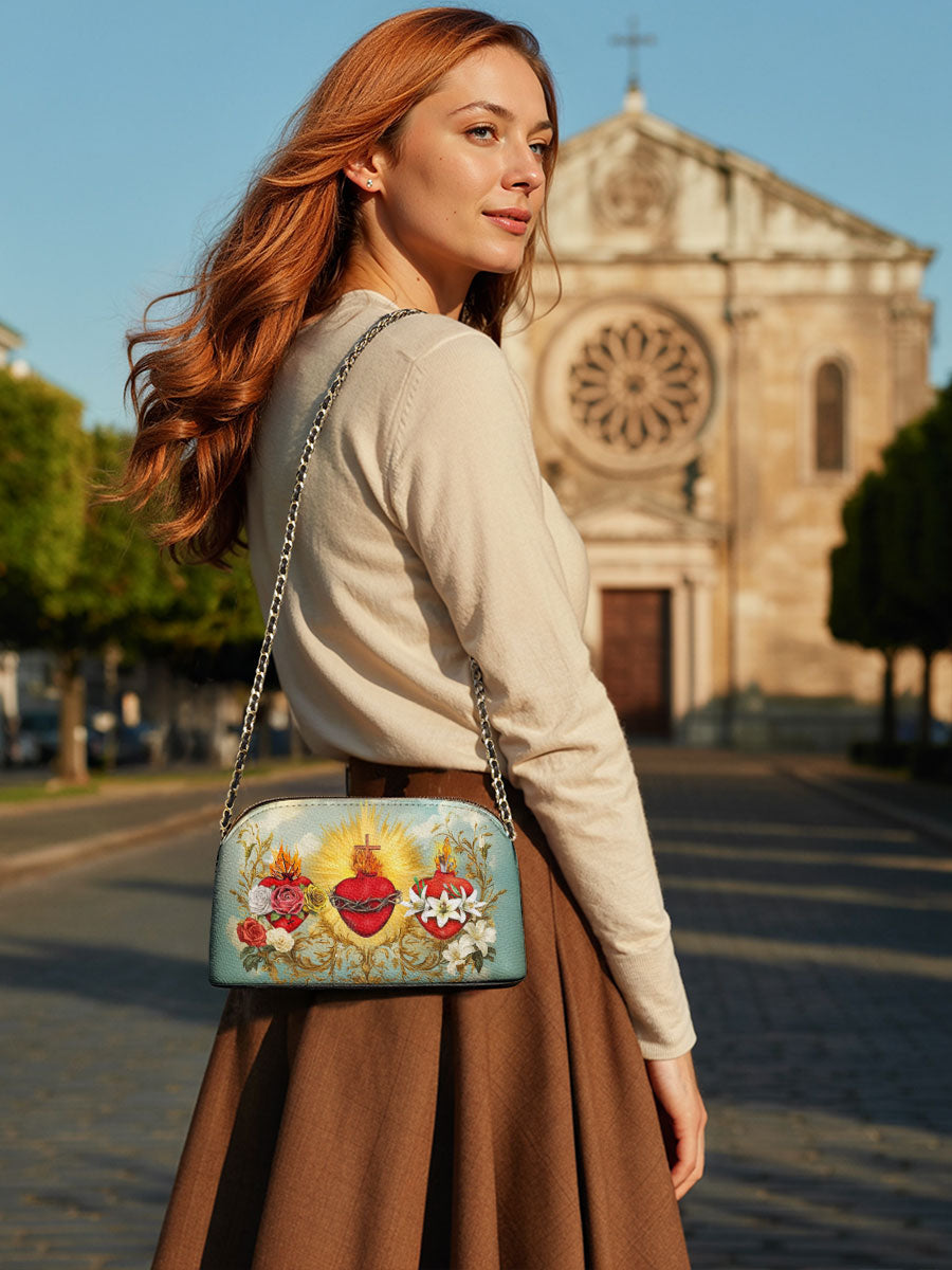 Die Catholight Crossbody Bag wurde mit Eleganz und Bedacht entworfen. Sie ist ein stiller Ausdruck von Glaube und Eleganz. Ihre kompakte Form, der goldverzierte Kettenriemen und die symbolische Gestaltung machen sie zu einem bedeutungsvollen Begleiter im Alltag und in besonderen Momenten.