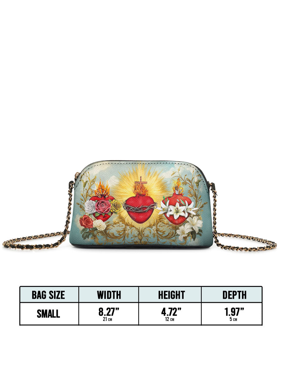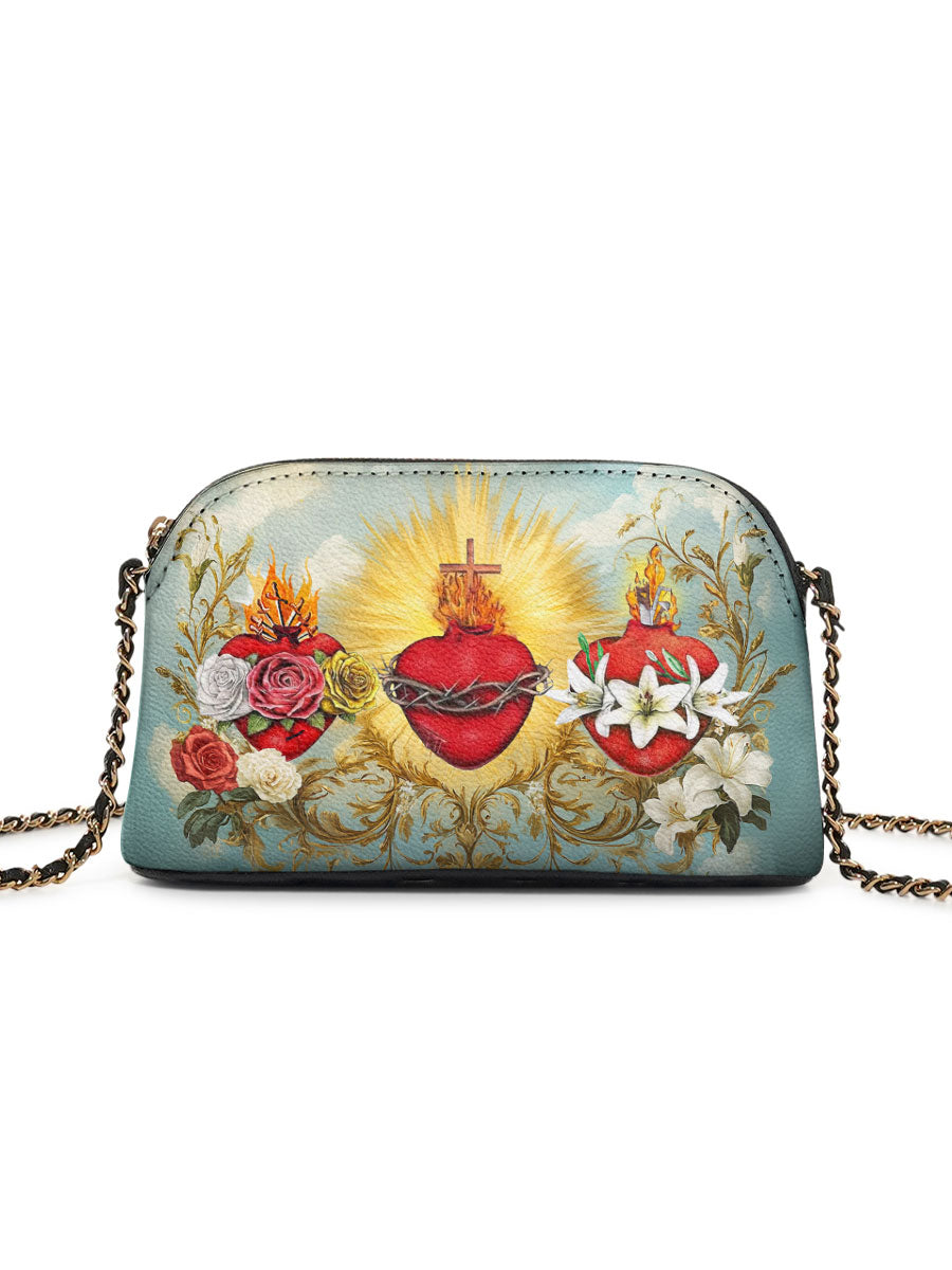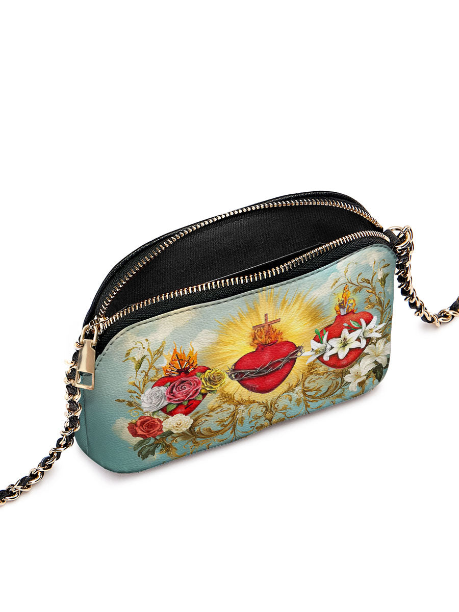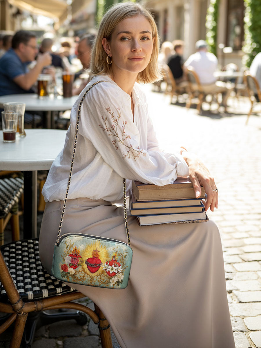 Die Catholight Crossbody Bag wurde mit Eleganz und Bedacht entworfen. Sie ist ein stiller Ausdruck von Glaube und Eleganz. Ihre kompakte Form, der goldverzierte Kettenriemen und die symbolische Gestaltung machen sie zu einem bedeutungsvollen Begleiter im Alltag und in besonderen Momenten.