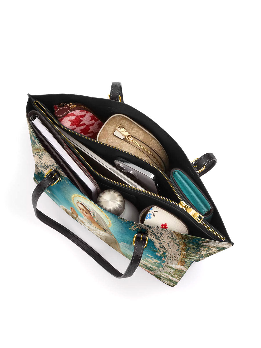 Trage deinen Glauben auf schöne Weise mit dem Catholight Tragetasche . Erstklassige Handwerkskunst trifft auf sakrale Kunst und schafft so eine geräumige, elegante Tasche, die Sie im Alltag und auf spirituellen Reisen gleichermaßen begleitet.