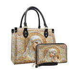 The structured handbag offers elegance and purpose, while the matching wallet keeps your most important essentials close — both crafted to reflect the faith you carry in your heart.