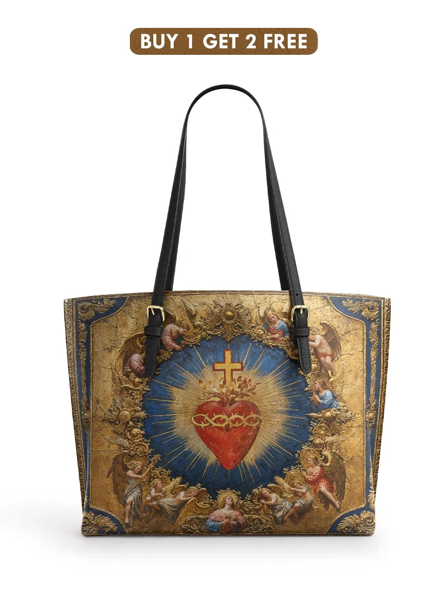 Catholight Sacred Heart of Divine Love Leather Tote Bag