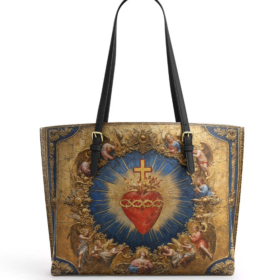 Catholight Sacred Heart of Divine Love Leather Tote Bag