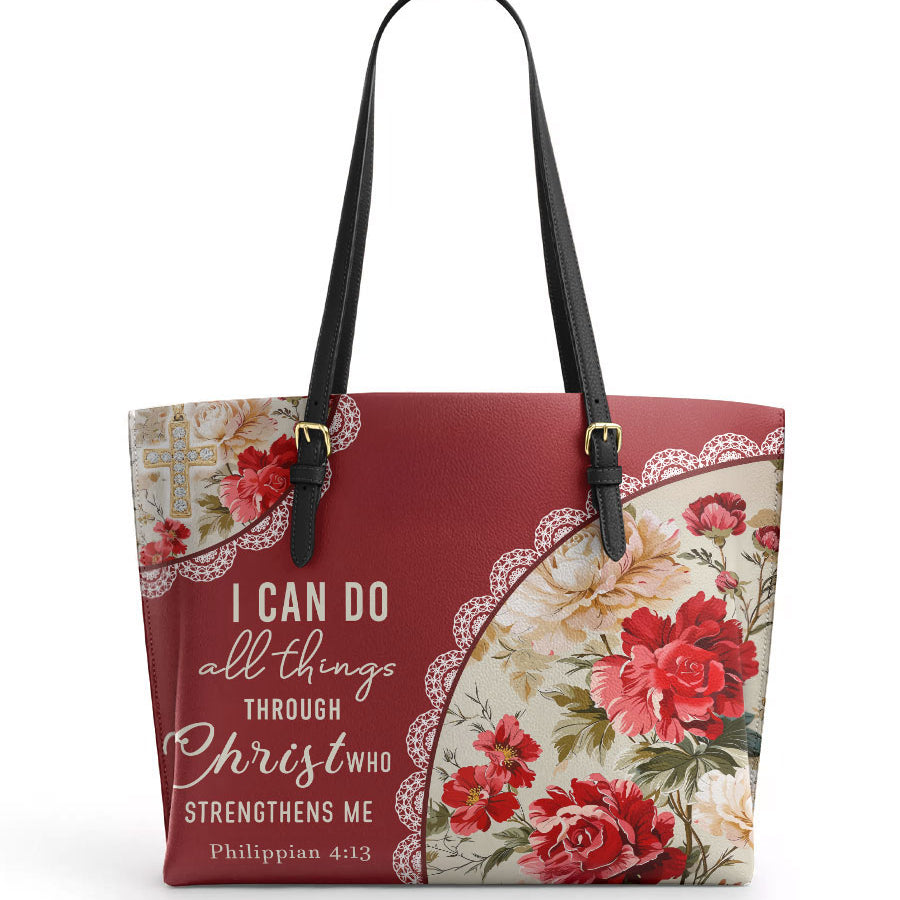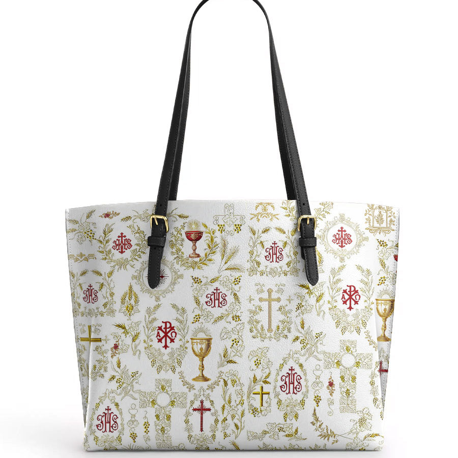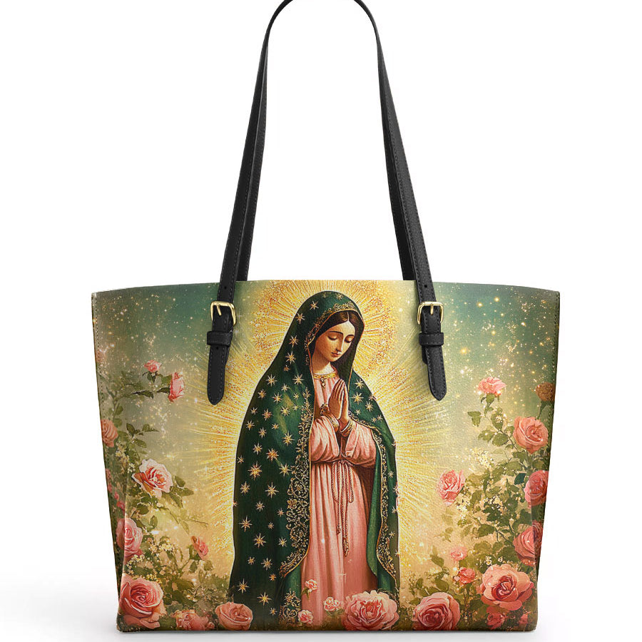Catholight The Ave Maria Pattern Leather Tote Bag