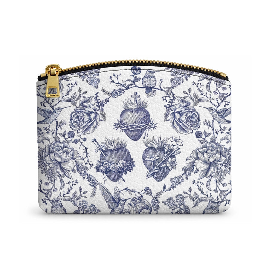 Catholight Sacred Elegance: Blue and White Devotion Leather Rosary Pouch