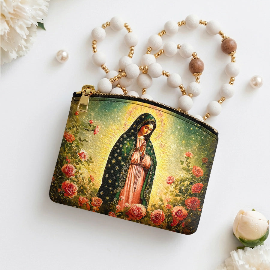Catholight Roses of Guadalupe Leather Rosary Pouch