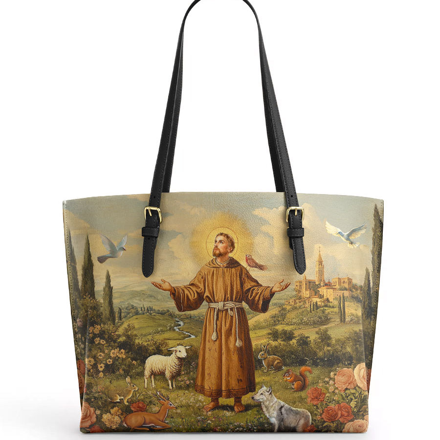 Catholight Harmony of Saint Francis Leather Tote Bag