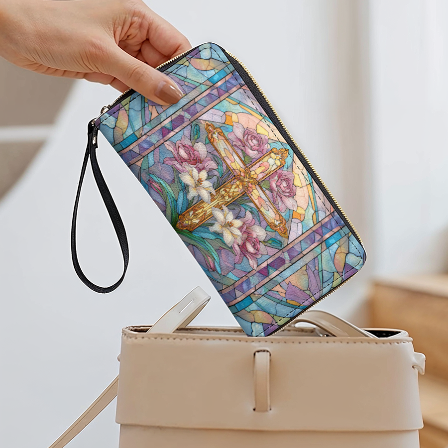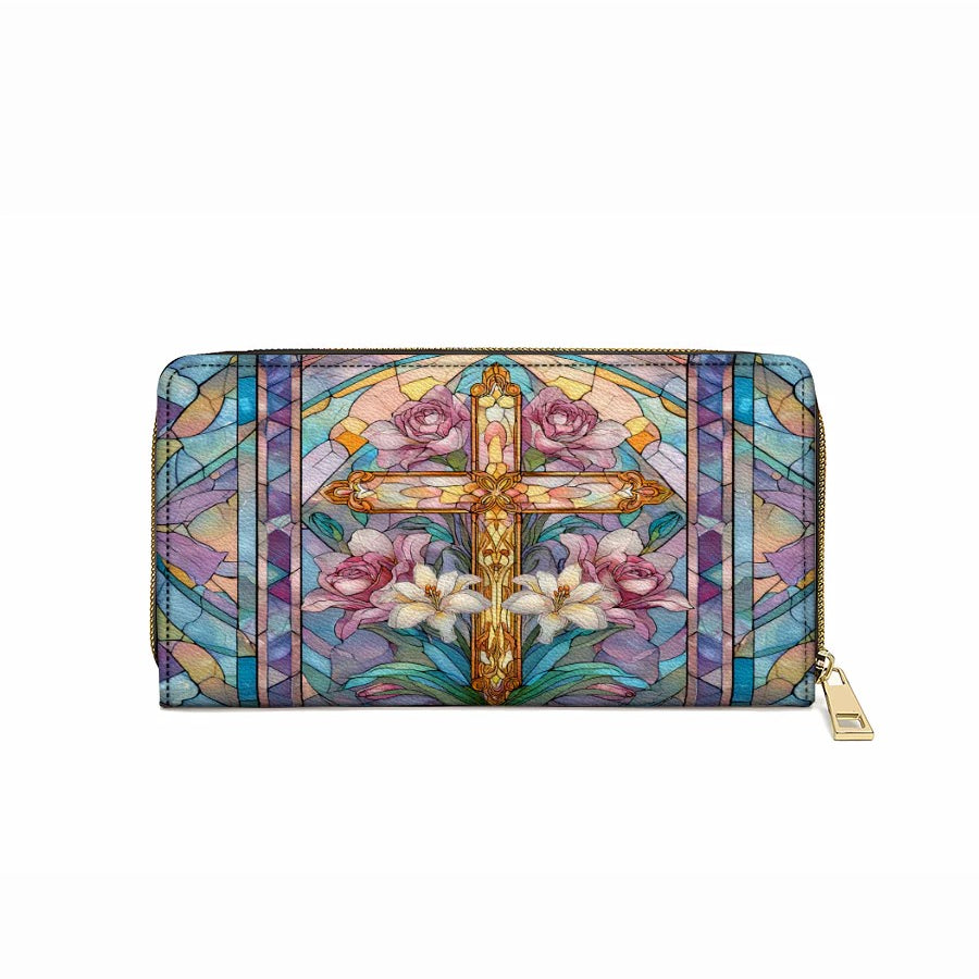 Catholight Floral Cross Radiance - Leather Wallet Purse