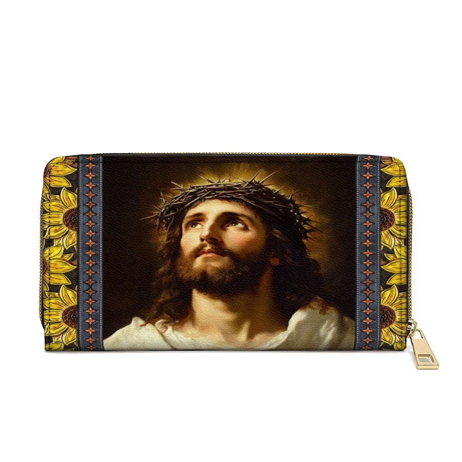 Catholight Crown of Thorns and Sunflower Grace - Leather Wallet Purse