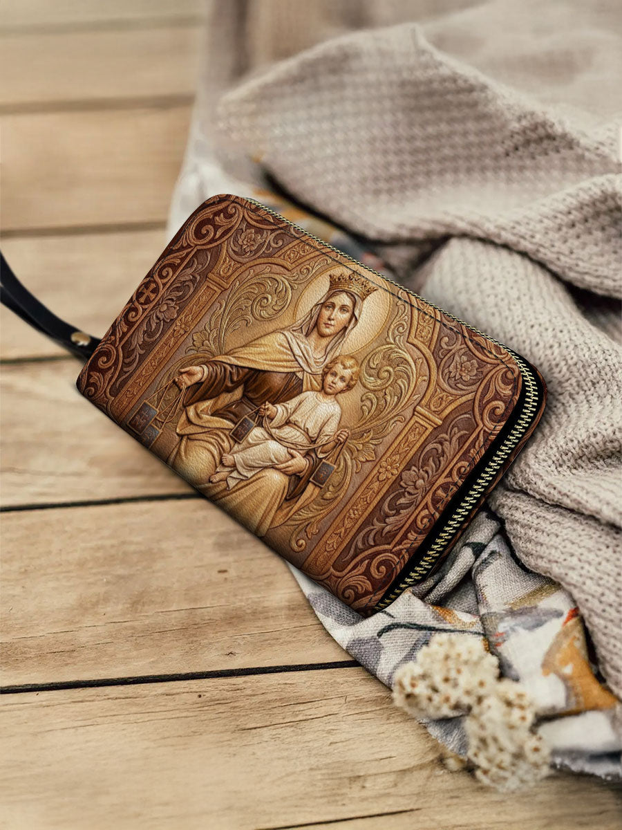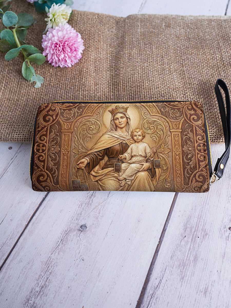 Inspired by Our Lady of Mount Carmel, this wallet is more than a beautiful accessory—it is a quiet expression of faith, protection, and devotion carried into everyday life.