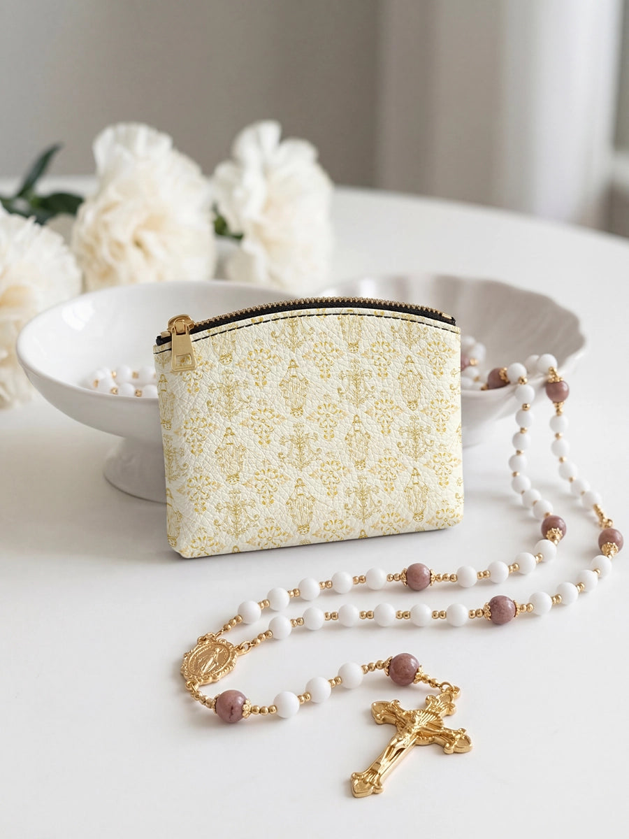 Catholight The Ave Maria Pattern Leather Rosary Pouch