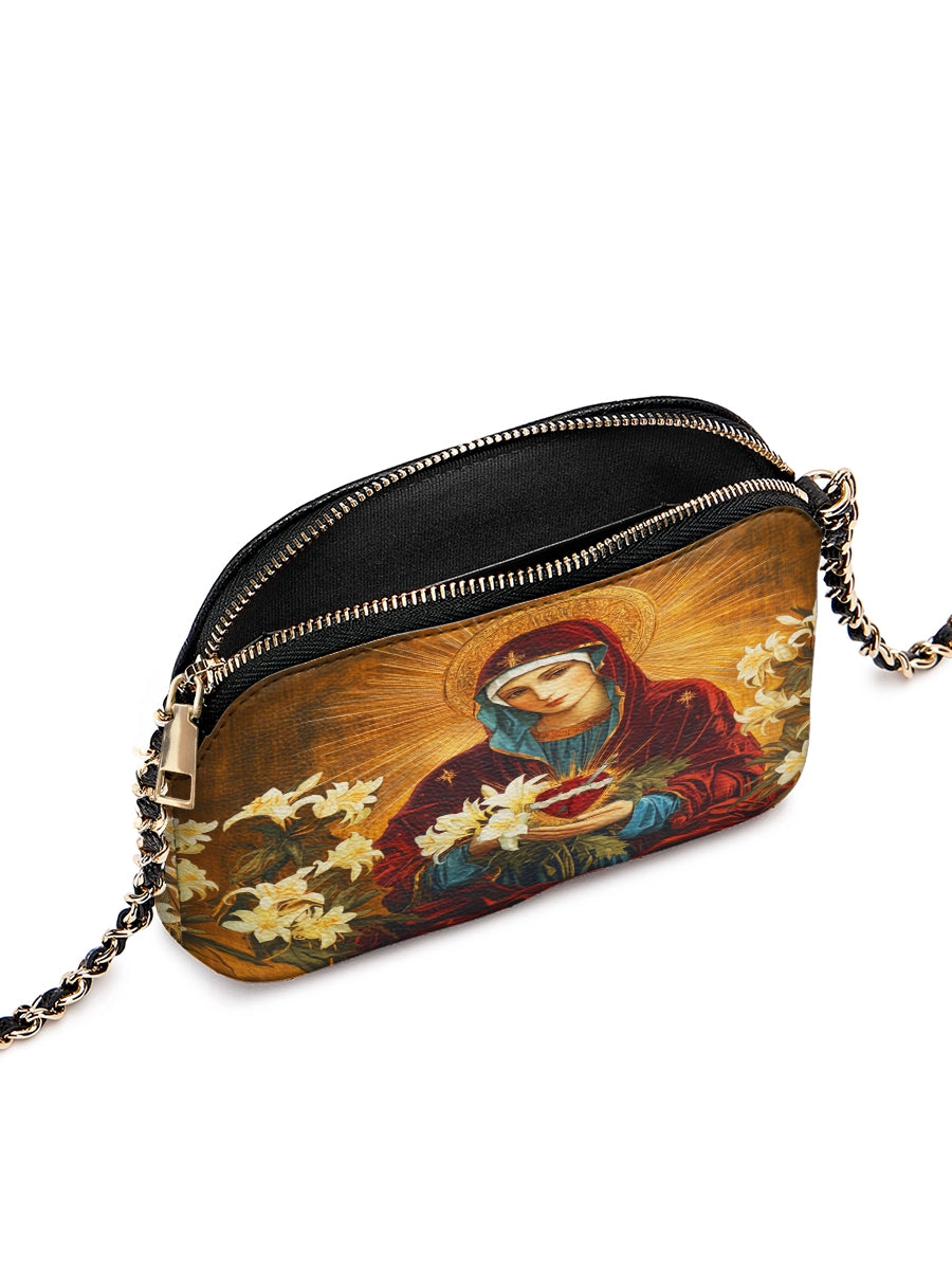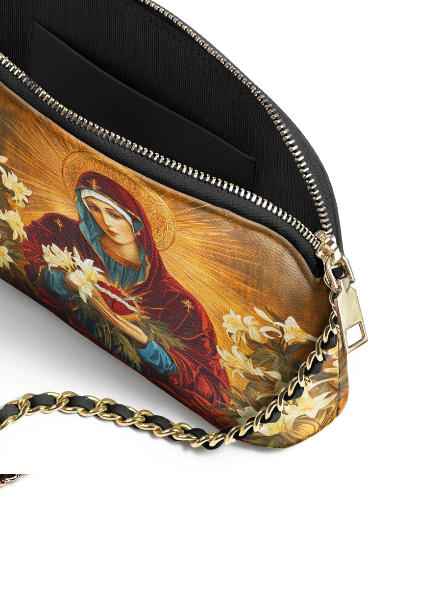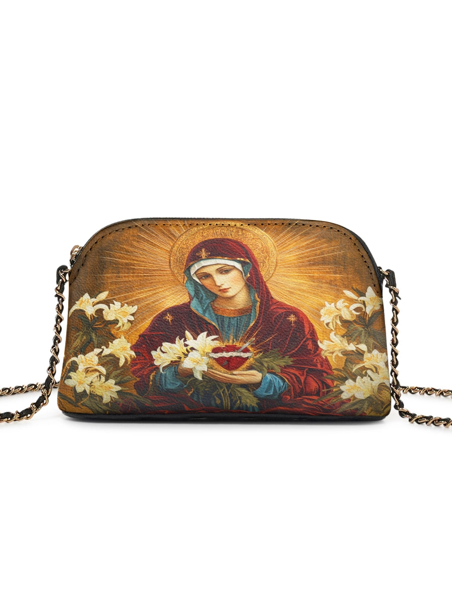 Designed with grace and intention, the Catholight Crossbody Bag is a quiet expression of faith and elegance. Its compact form, gold-accented chain strap, and symbolic artwork make it a meaningful companion for both daily life and sacred moments.
