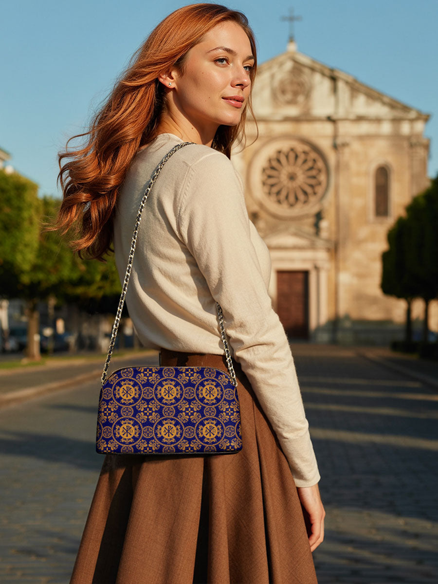 Die Catholight Crossbody Bag wurde mit Eleganz und Bedacht entworfen. Sie ist ein stiller Ausdruck von Glaube und Eleganz. Ihre kompakte Form, der goldverzierte Kettenriemen und die symbolische Gestaltung machen sie zu einem bedeutungsvollen Begleiter im Alltag und in besonderen Momenten.