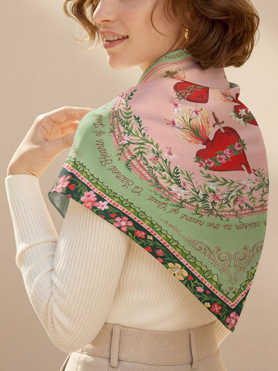 Catholight Holy Family Hearts Square Scarf
