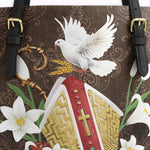 Trage deinen Glauben auf schöne Weise mit dem Catholight Tragetasche . Erstklassige Handwerkskunst trifft auf sakrale Kunst und schafft so eine geräumige, elegante Tasche, die Sie im Alltag und auf spirituellen Reisen gleichermaßen begleitet.