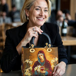 Diese Ledertasche ist perfekt für alle, die ihren Glauben auf eine bedeutungsvolle Weise zum Ausdruck bringen möchten. Ihr zeitloses Design spiegelt nicht nur spirituelle Schönheit wider, sondern erinnert auch sanft an Marias unerschütterliche Liebe und Führung im Alltag.
